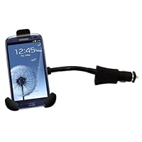 It's OK. It does the job for the most part, however it is not secured well in the power socket and when you make turn faster than 10 mph it rotates to the side and falls out. I have to constantly make sure it is plugged in and re-adjust it. Not a convenient thing to do when driving..It is a rare occasion that I buy something from Amazon that doesn't work out. This one is a dud. I have a Samsung Galaxy S3. I have tried every position that I can get the holder in and it is not strong enough to hold my phone upright. It stays upright for a while, but then it slowly moves (rotates) downward. But, that's not the only problem. In an attempt to give it some stability, they added some rubber gaskets to beef up the part that goes into the charger hole (sorry for that technical description). While that seemed like a good design choice to me, what it does is interfere with the charging connection. Blue light on, off, on, off, etc. Every time it makes and then breaks the connection, the Galaxy gives you a little beep. I thought at first that I had screwed up a setting on the phone it sounded like an alarm going off. I guess if your car charger is positioned exactly right you will be able to get the phone rest upright on a flat surface. I have a Lincoln MKZ and a Dodge Ram 1500, the holder doesn't work for either.I purchased this for use in my car (Chevy Malibu) which has a plug that is almost horizontal. The flexible neck bends easily to hold the phone vertically, and the connection is plenty strong to hold the phone exactly where I need it. Most of the time I use it as a mount, but when needed I have expandable USB cables to plug in for power. There is a blue LED on the base which lights up when the mount is inserted enough for power. It holds the phone just fine even when it is not inserted enough to trigger the power.The mount easily adjusts to hold either my Samsung Galaxy S3 and my wife's iPhone 4S.