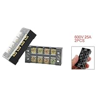 Gino 2 pcs 4 Position Barrier Block Covered Screw Terminal Strip 600V 25A